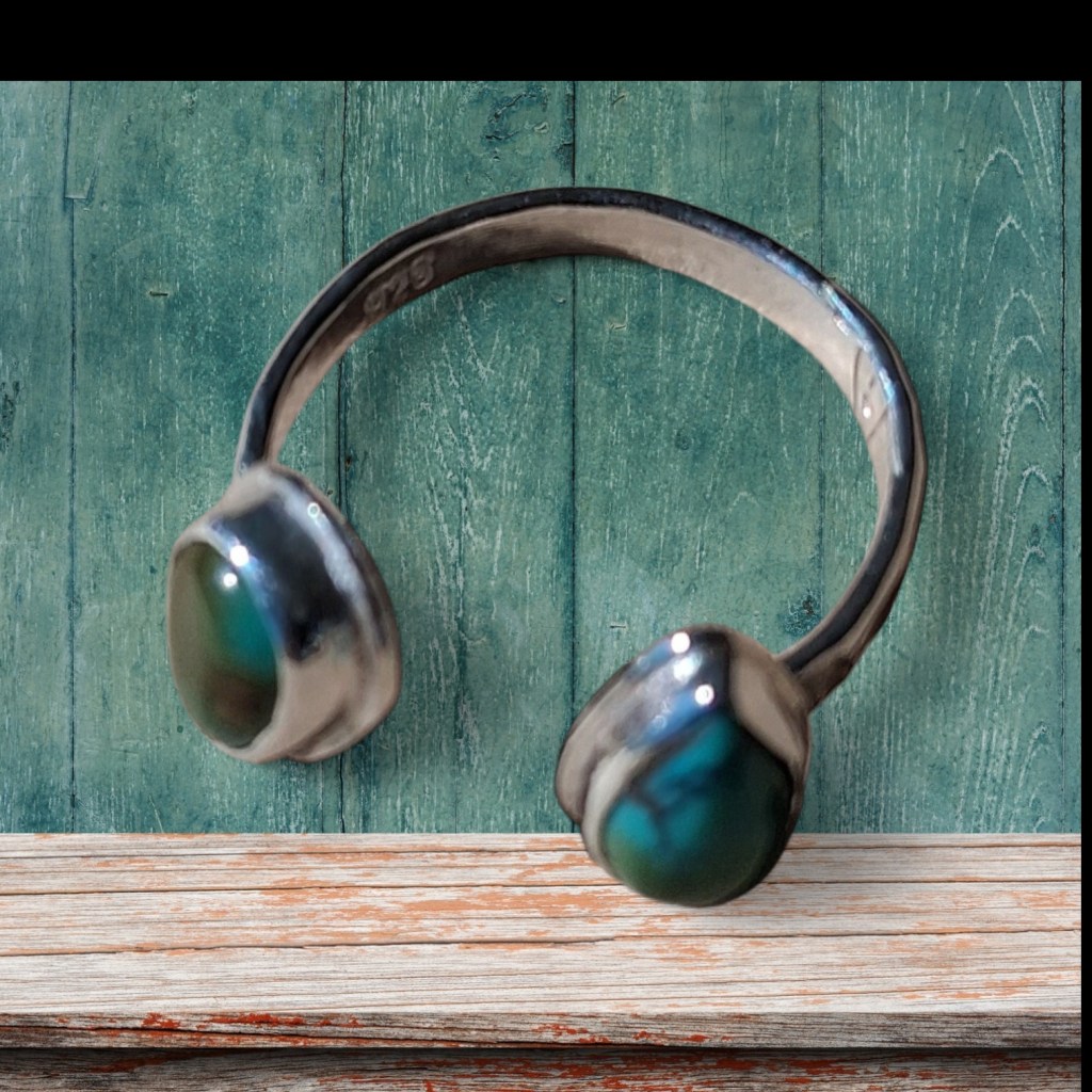 Turquoise hammered split band ring in sterling silver, size 6, slightly adjustable, $78